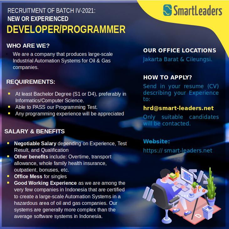 Lowongan | 05 Januari 2022 15:19 wib WHO ARE WE? We are a company that creates large-scale Industrial Automation Systems, especially for Oil & Gas companies. Yes, we are the creator of the system, not merely a distributor as most of companies in Indonesia. Our systems are all large-scale, nation-wide and mission-critical nation-wide to serve the people of republic Indonesia for 24 hours for years. To say as an example, in Pertamina and its subsidiaries, our system has been running for 12 years supporting the fuel distribution of fuel to SPBU via Truck in all cities in Indonesia. Recently, Pertamina expands our scope to provide Terminal Automation System in both LPG and BBM, and also to provide automation systems in all pertamina ports in Indonesia as well. Thousands of servers and devices has been put across Indonesia to support our systems.WE NEED CANDIDATES THAT HAVE: