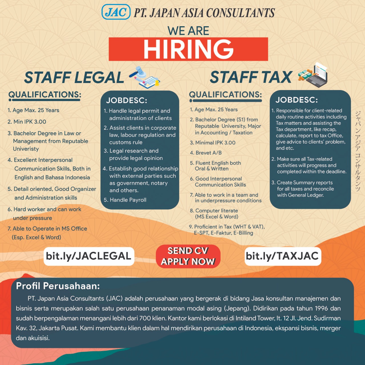 HIRING STAFF LEGAL & STAFF TAX PT. JAPAN ASIA CONSULTANTS