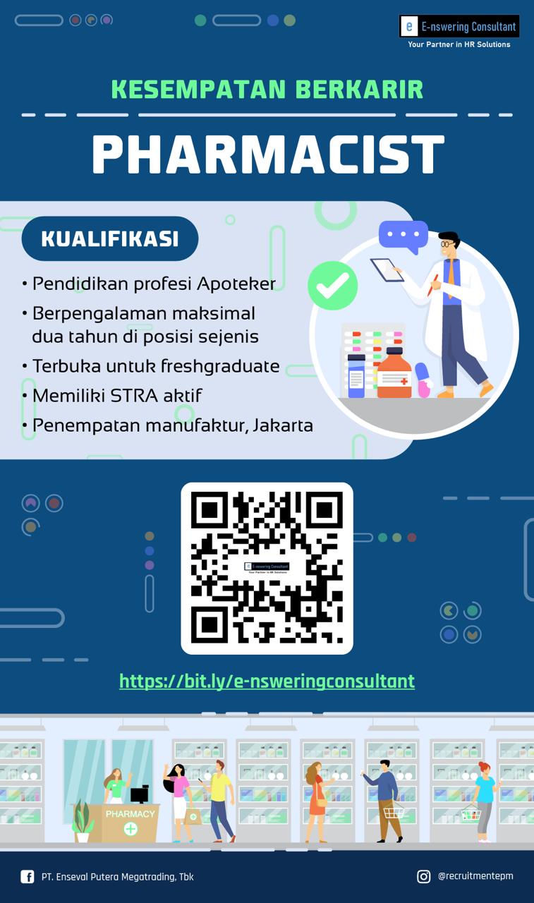 kualifikasi untuk posisi Pharmacist (penempatan Jakarta Timur), segera apply ke