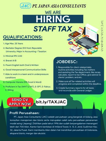 HIRING STAFF PAJAK PT. JAPAN ASIA CONSULTANTS
