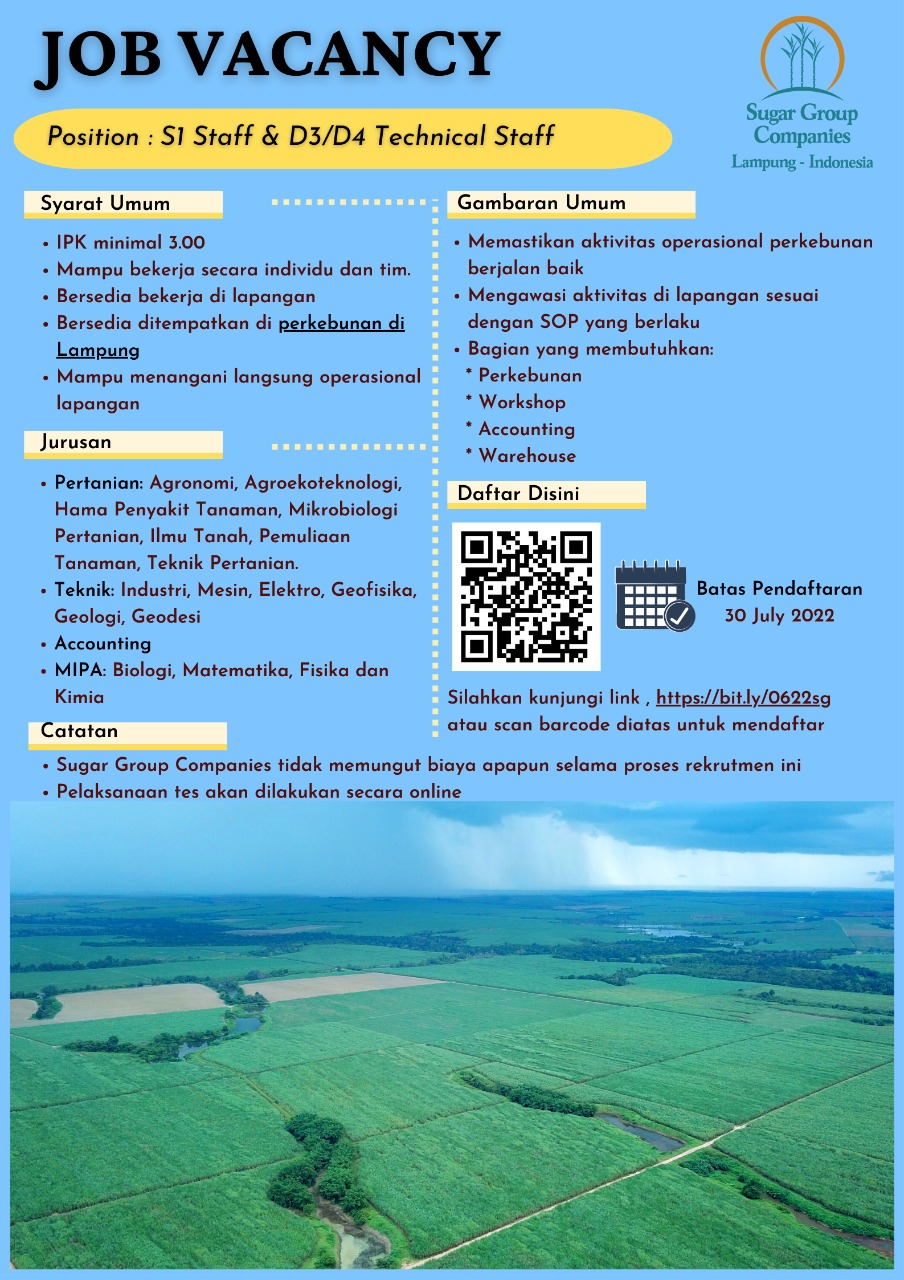 JOB VACANCY PT SUGAR GROUP COMPANY- July 2022