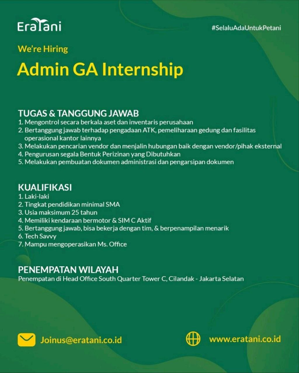 silahkan apply untuk posisi dibawah ini :Admin GA Internship