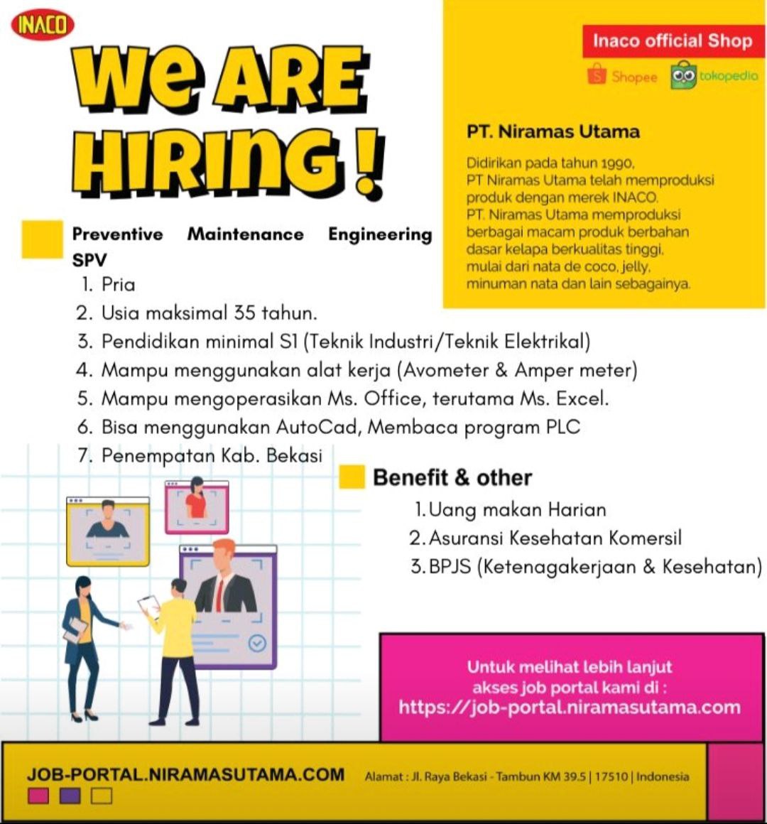 PT Niramas Utama sedang membutuhkan beberapa kandidat untuk menduduki posisi sebagai berikut ini: