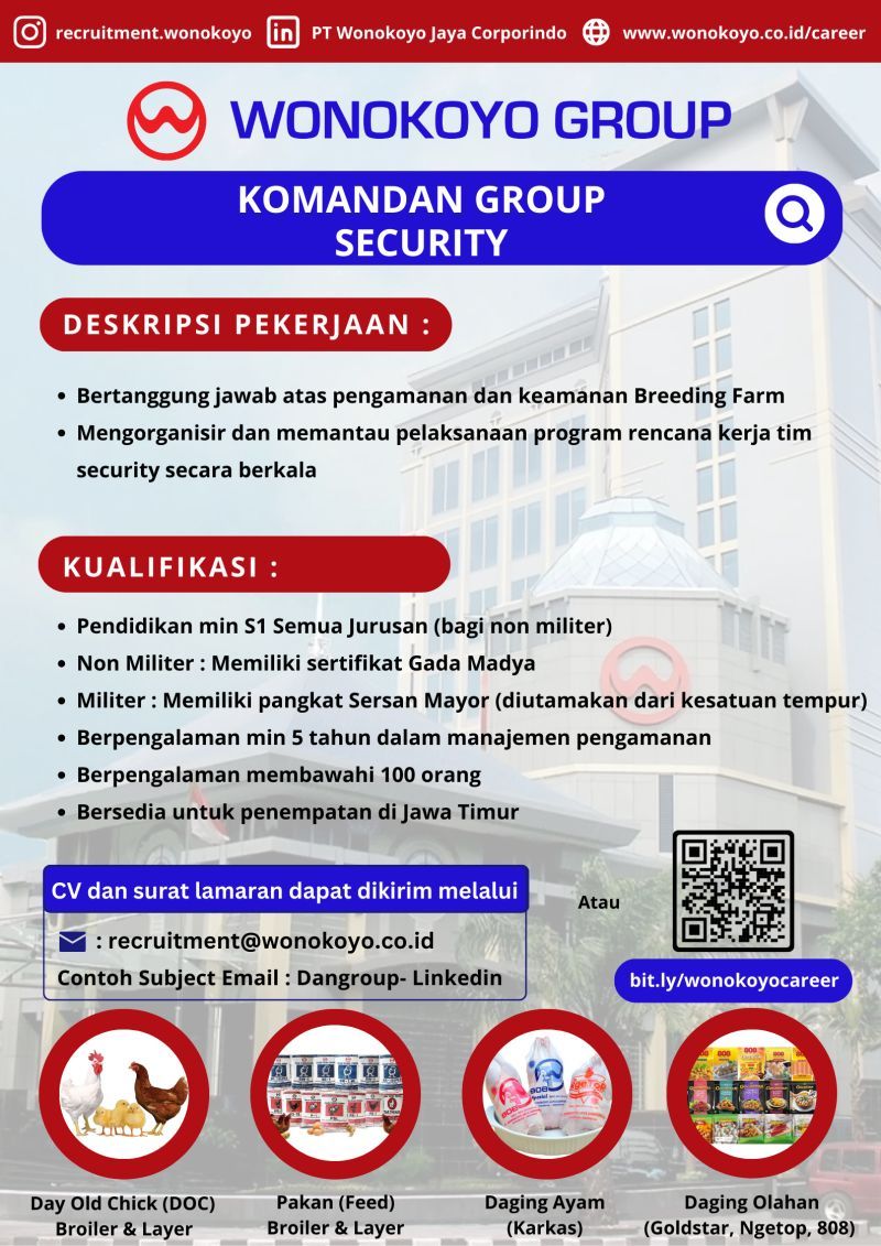 Lowongan kerja pososi Komandan Group Security di Wonokoyo Group