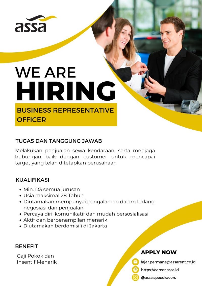 ASSA Rent (PT Adi Sarana Armada Tbk) is urgently need!Saat ini ASSA membuka lowongan Business Representative Officer untuk penempatan di ASSA Rent cabang Jakarta 2 yang beralamat di Jl. Saiman No.14, Pondok Pinang, Kebayoran Lama.