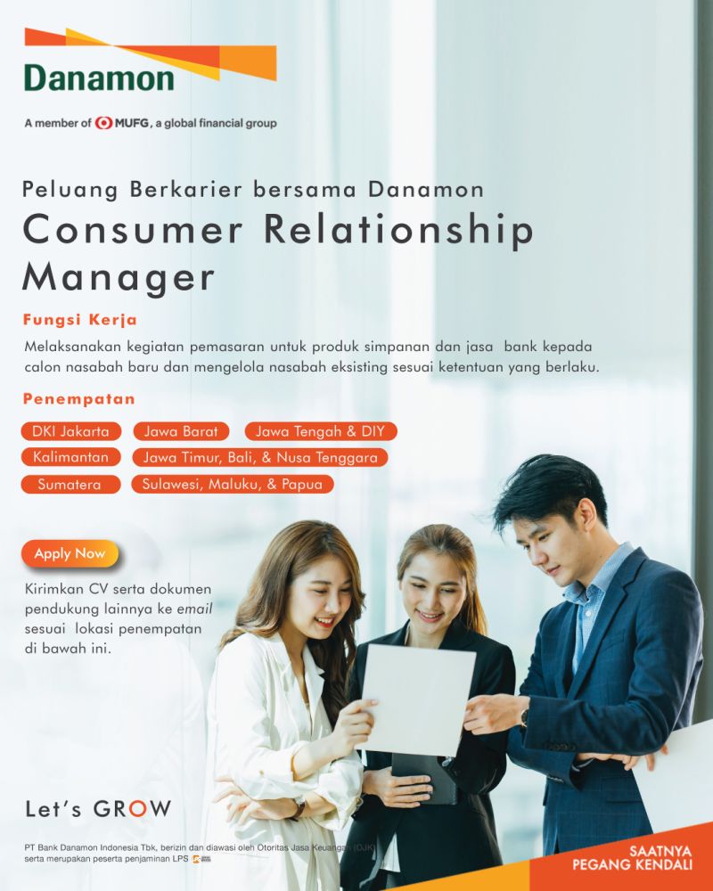 Peluang berkarir bersama Danamon sebagai Consumer Relationship Manager.