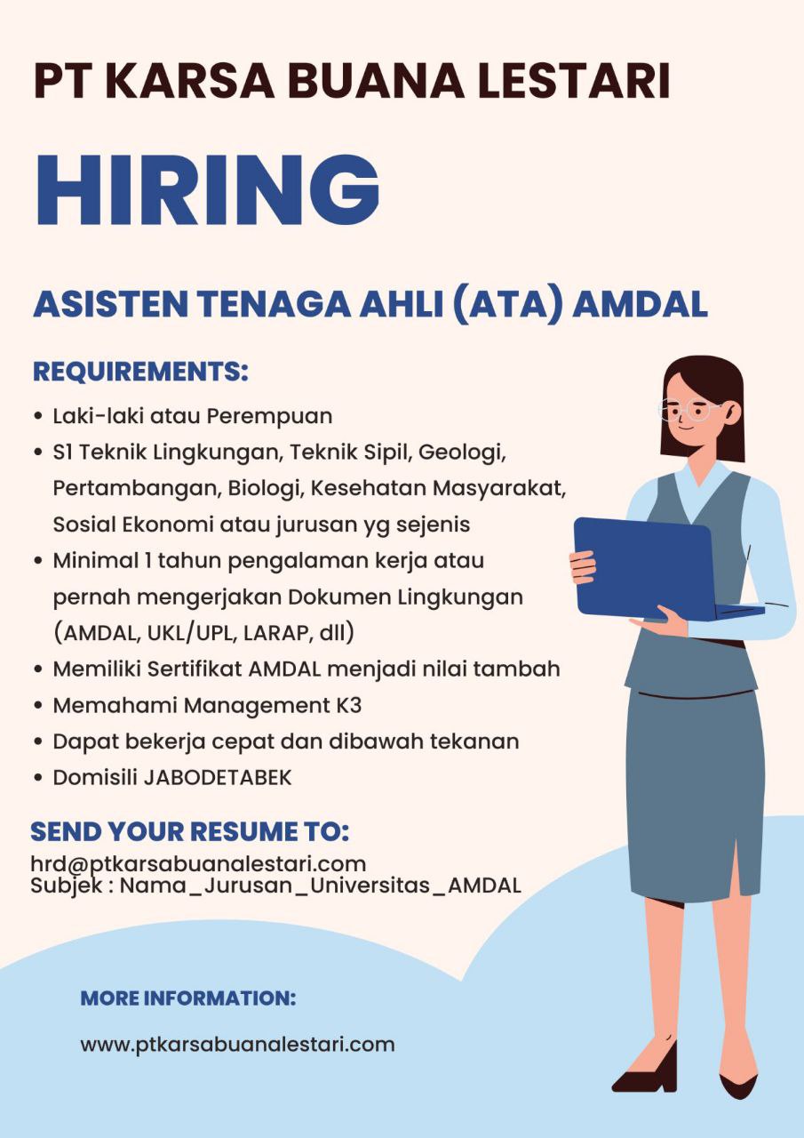 PT. Karsa Buana Lestari hiring for Asisten Tenaga Ahli (ATA) AmdalJoin ASAP, Send your CV or Resume :