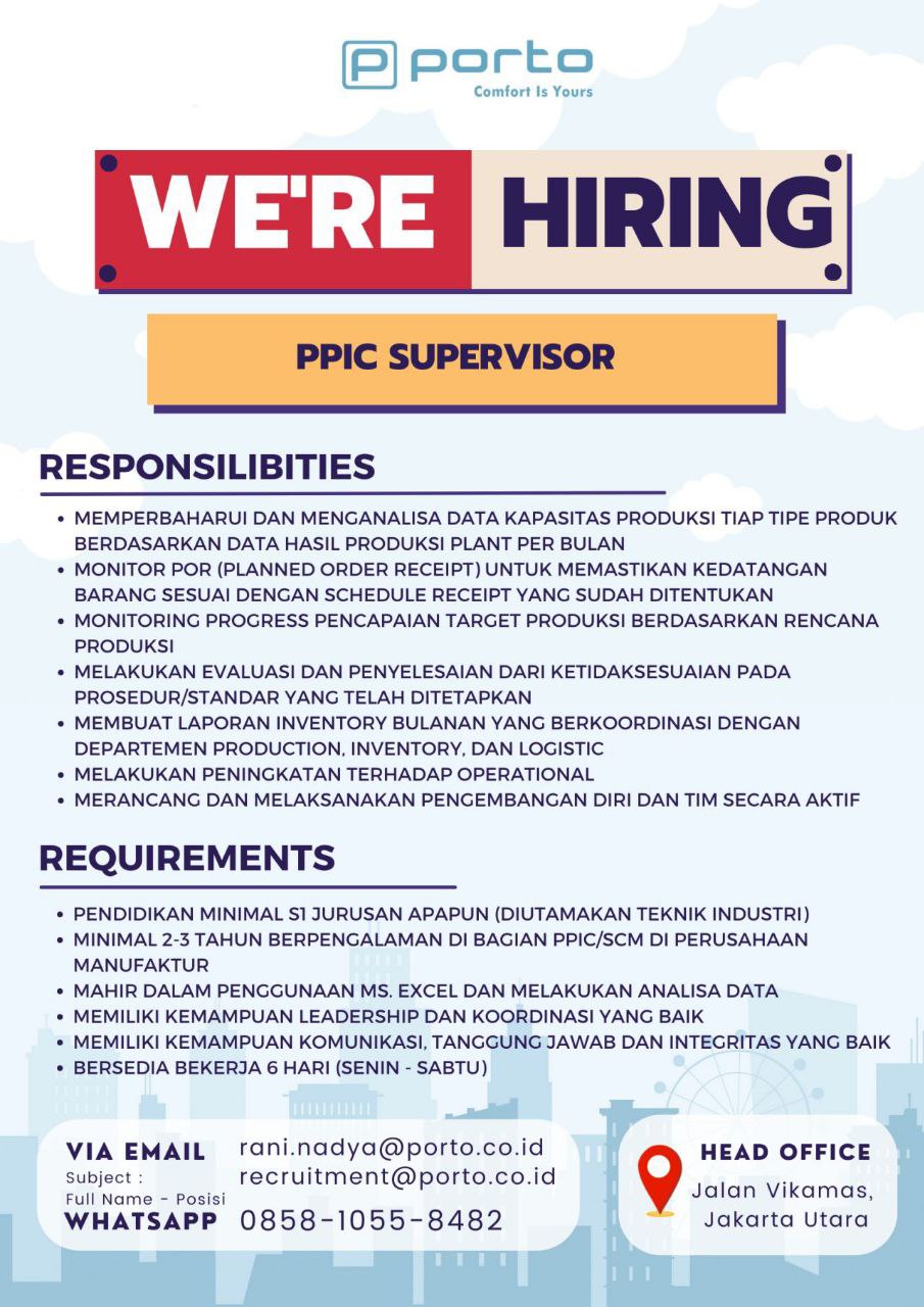 email: rani.nadya@porto.co.id (Subject: Name - PPIC Supervisor) or just drop me a message on my direct message LinkedIn
