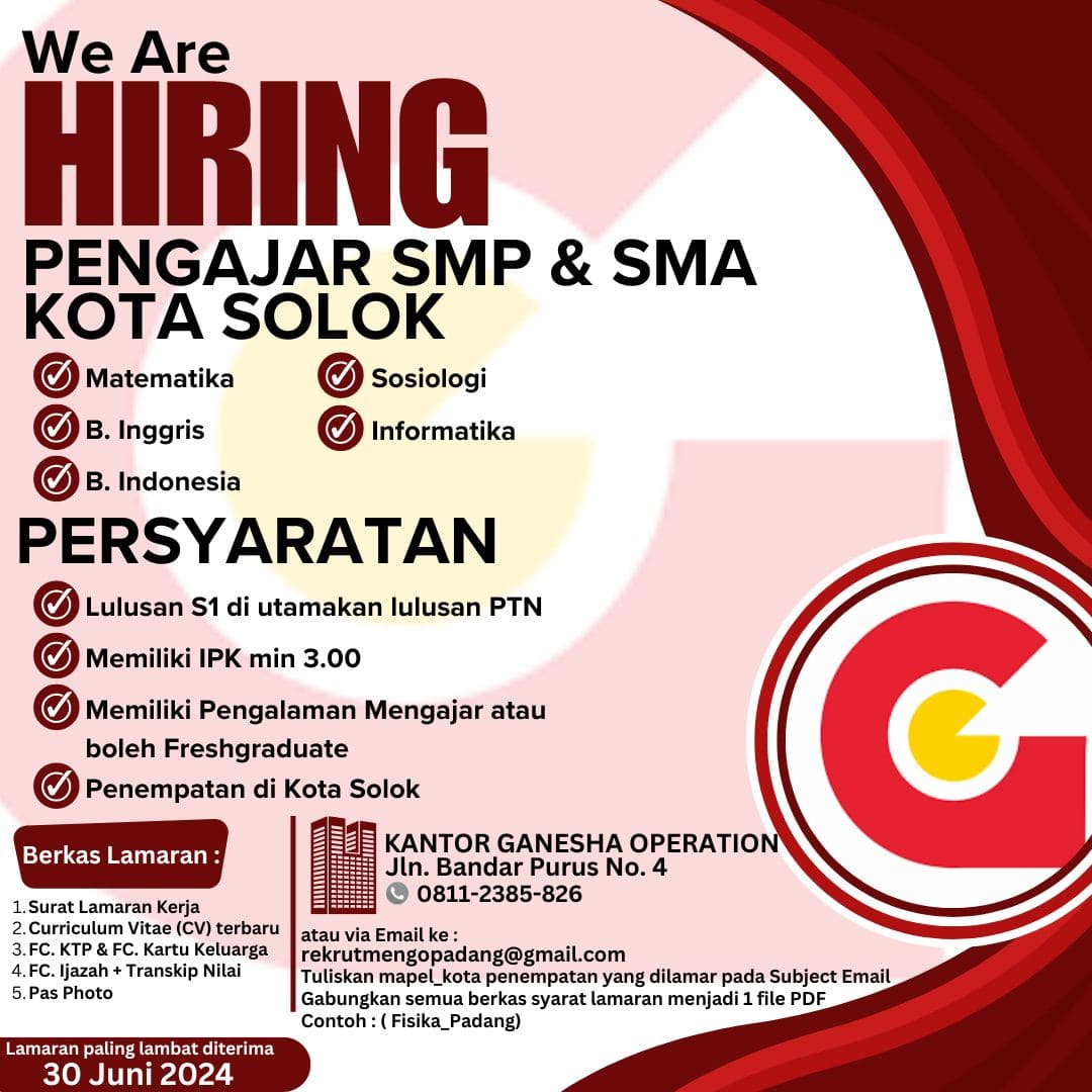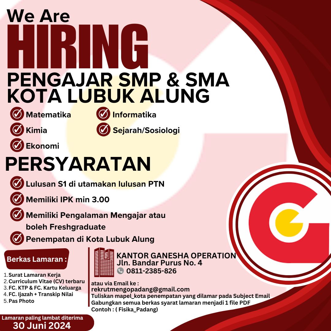 bergabung bersama kami. Ganesha Operation mencari kandidat yang