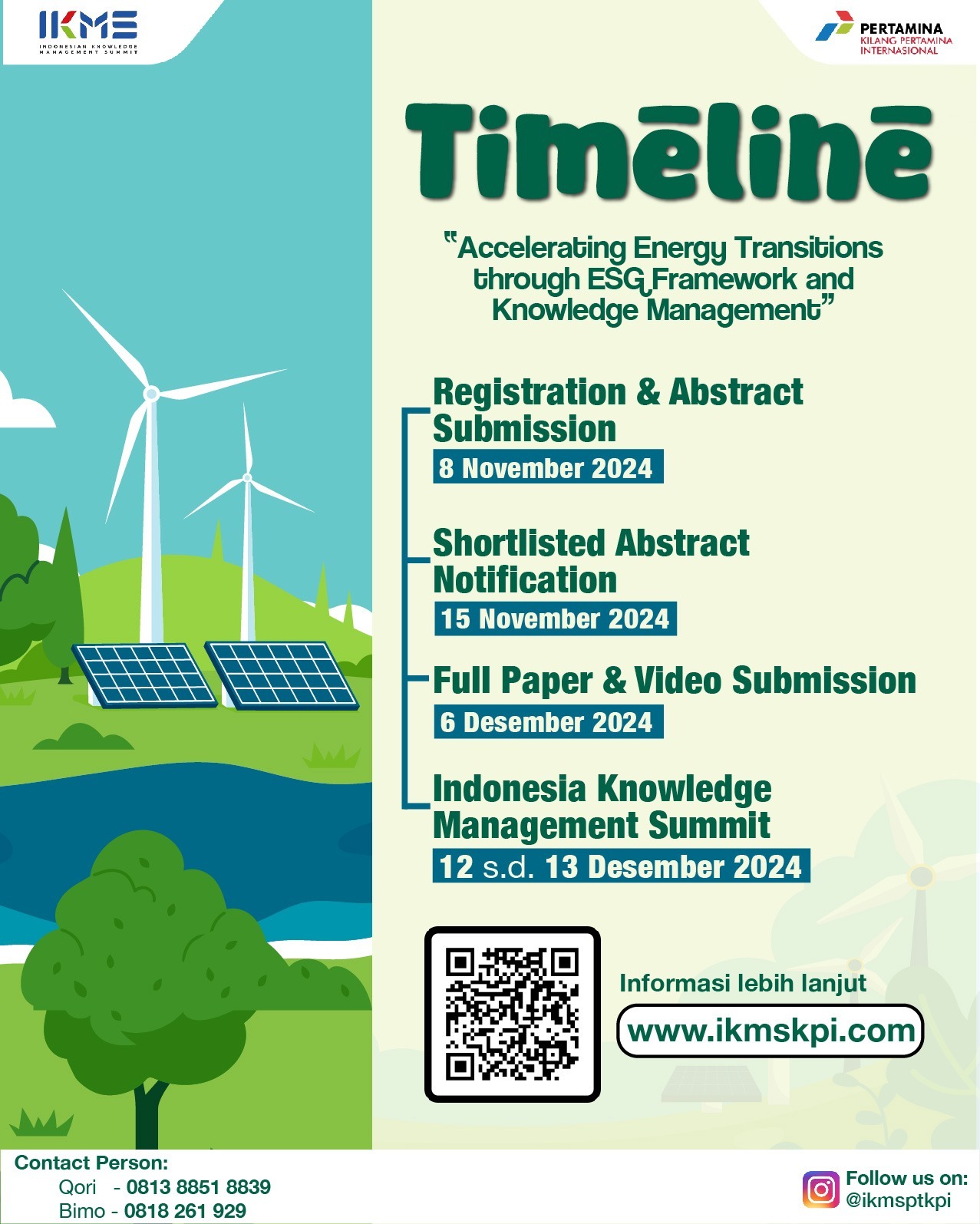 Dalam hal perubahan energi yang pesat, kami mengajak mahasiswa, peneliti, praktisi, dan profesional untuk berbagi ide serta penelitian inovatif tentang bagaimana kerangka kerja ESG (Environmental, Social, and Governance) dapat mempercepat transisi energi melalui manajemen pengetahuan.