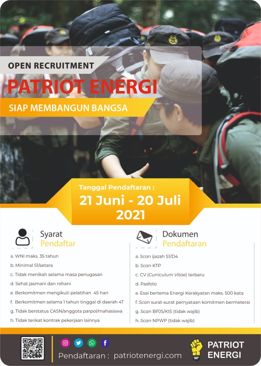 Kepada seluruh Sobat Energi, pintu menjadi Patriot Energi sudah dimulai, saatnya mendaftar yok!